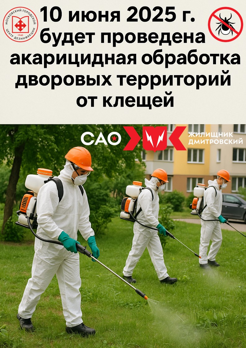 10 июня будет проведена акарицидная обработка дворовых территорий Дмитровского района от клещей.