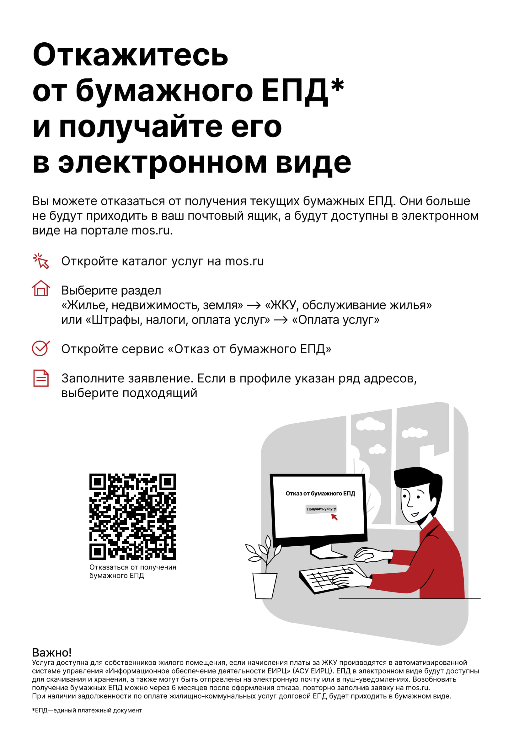 * Воспользоваться сервисом можно по желанию. Все, кто захочет сохранить привычный бумажный вариант ЕПД, продолжат получать квитанции.